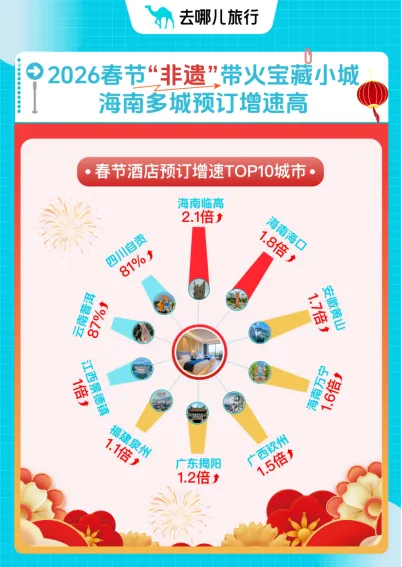 值得一提的是,一批自带文化厚度与体验属性的“非遗小城”,正在成为越来越多家庭和年青游客的选拔。去哪儿旅行数据潜入,安徽黄山、江西景德镇、福建泉州、广东佛山、四川自贡等领有非遗体验的小城,寒假春节时间的货仓预订量同比增速卓越。其中,黄山的货仓预订量同比增长1.7倍,景德镇、泉州的货仓预订同比翻番,自贡和佛山的货仓预订则辩认增长81%和73%。