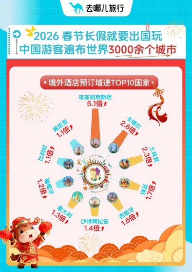 同期,一些“新一又友”也在参加中国游客的视线。去哪儿旅行数据潜入,自1月2日起对中国游客免签的土耳其,寒假春节的货仓预订量同比增长2.3倍。此外,乌兹别克斯坦、卡塔尔、埃及、西班牙、意大利、葡萄牙等国度的货仓预订增速同比均跨越1倍。