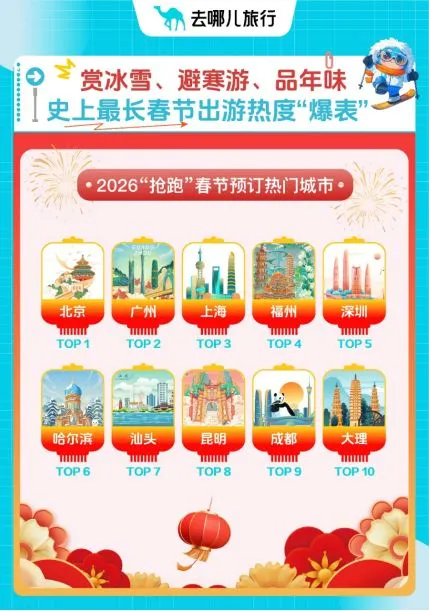 去哪儿旅行数据潜入,轨则1月14日,春节时间热点城市货仓预订量同比涨七成。“抢跑”春节预订的热点城市包括:北京、广州、上海、福州、深圳、哈尔滨、汕头、昆明、成都、大理。冰雪季“顶流”哈尔滨,大都市代表北上广深成纷纷上榜;而以“慢生存”为代表的蔼然城市福州、汕头、昆明、大理也麇集出圈,成为人人过年的首选。