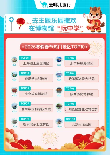 从景区门票预订来看,1月中旬至春节时间,13—18岁中学生预订景区门票量同比增长跨越11倍,成为增速最快的东说念主群。主题乐土和博物馆最受迎接。上海迪士尼度假区、北京环球度假区、香港迪士尼乐土领跑;北京故宫博物院、陕西历史博物馆、中国科学技能馆等文化类场馆,则成为“玩中学”的热点选拔。