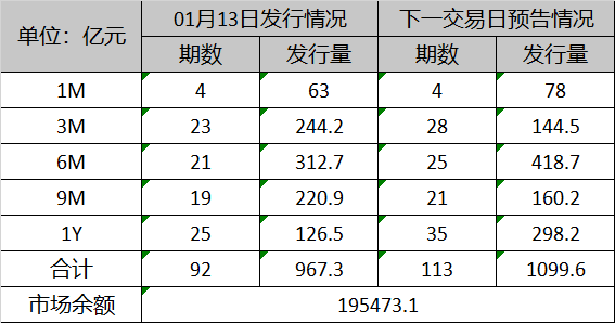 同行存单刊行92只,刊行量967.3亿元,较前日减少266.1亿元。
